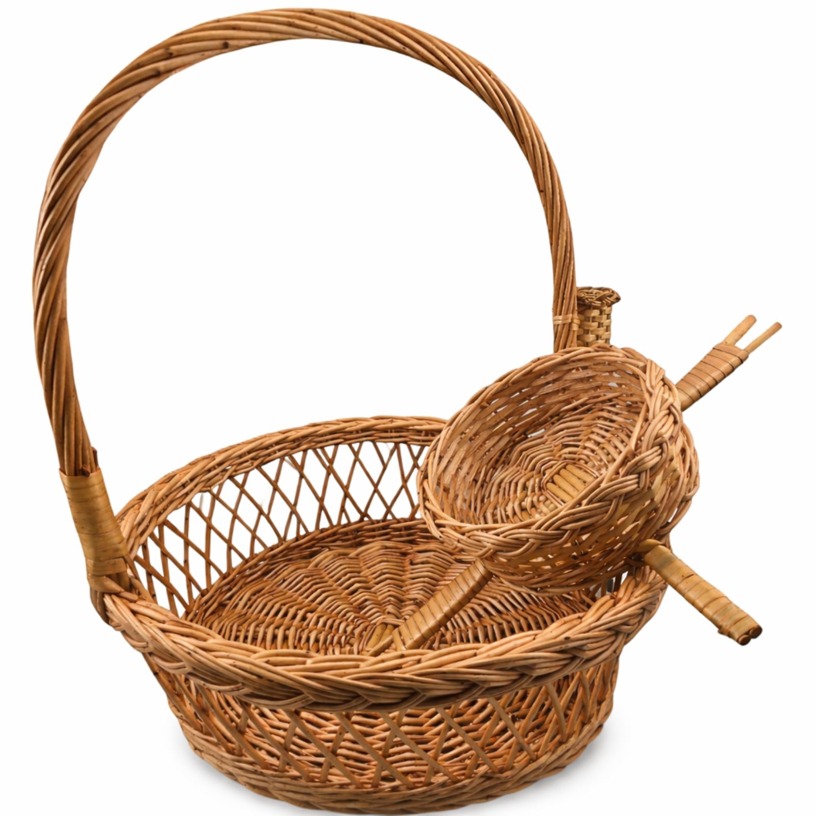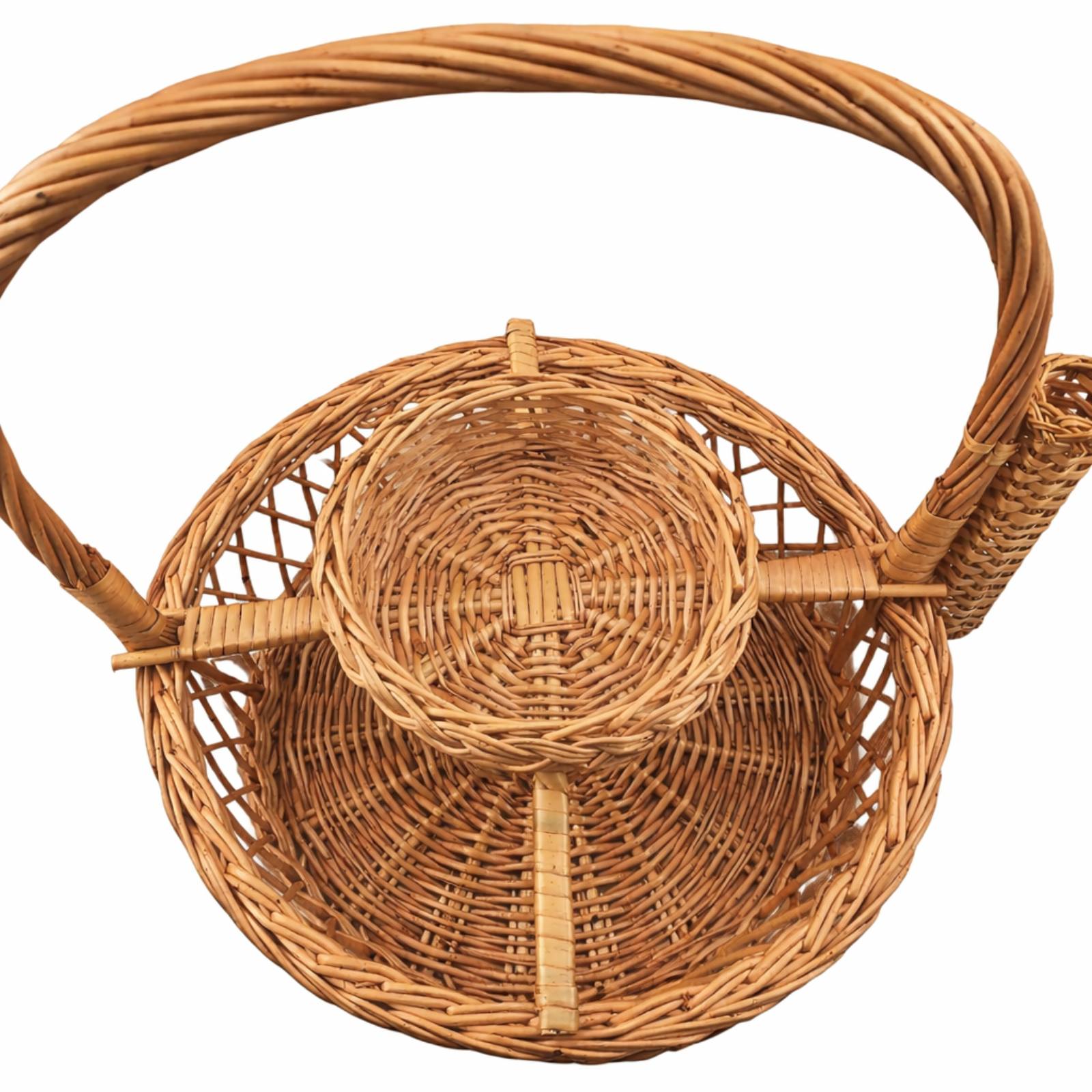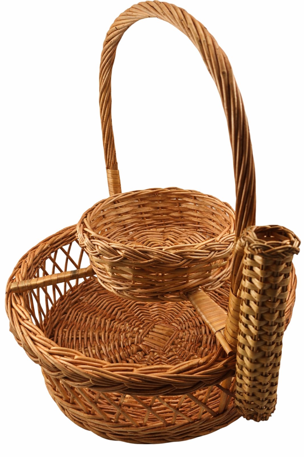 Pletena korpa za slavski kolač, slavsko žito i sveću tradicionalno je u upotrebi u obredima sečenja slavskog kolača u crkvi. Prirodnost materijala od kojih je korpa za slavski kolač, slavsko žito i sveću izrađena daju posebnu notu ovom proizvodu. Platena korpa za slvaski kolač, slavsko žito i sveću praktičan je predmet kod koga ne izostaje ni estetika ni originalnost. Element predviđen za slavsko žito je pomičan, tako da po izboru može stajati uz korpu ili van nje.
